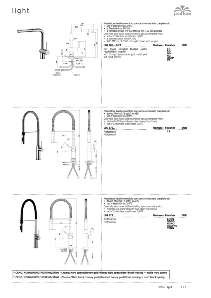 * CRNO/NONO/HGNO/HGSPNO/STNO - Cromo/Nero opaco/Honey gold/Honey gold spazzolato/Steel looking + molla nero opaco
