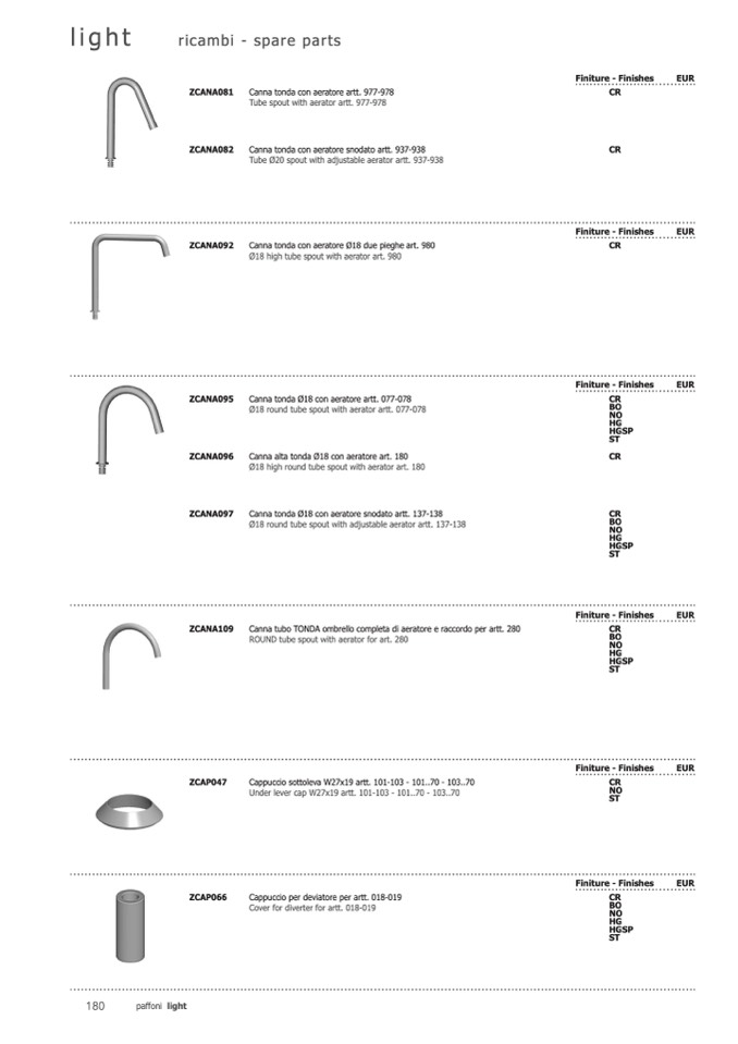 Ø18 round tube spout with aerator artt. 077-078