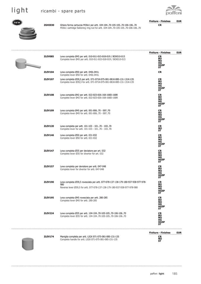 Complete handle for artt. LIGX 071-075-081-085-131-135