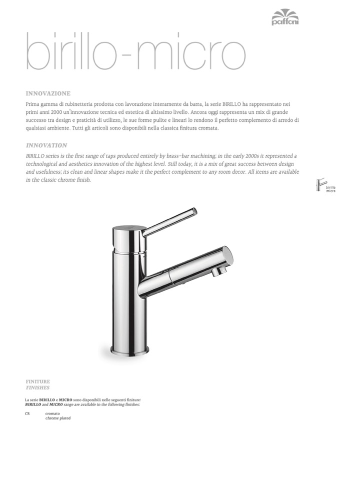 Prima gamma di rubinetteria prodotta con lavorazione interamente da barra, la serie BIRILLO ha rappresentato nei