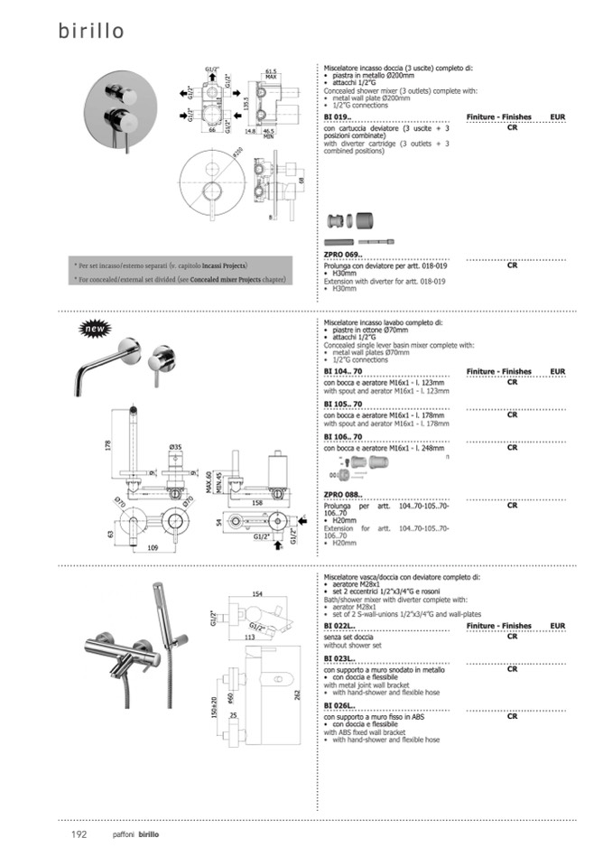* For concealed/external set divided (see Concealed mixer Projects chapter)