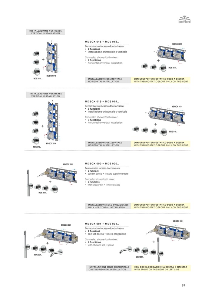 • horizontal or vertical installation