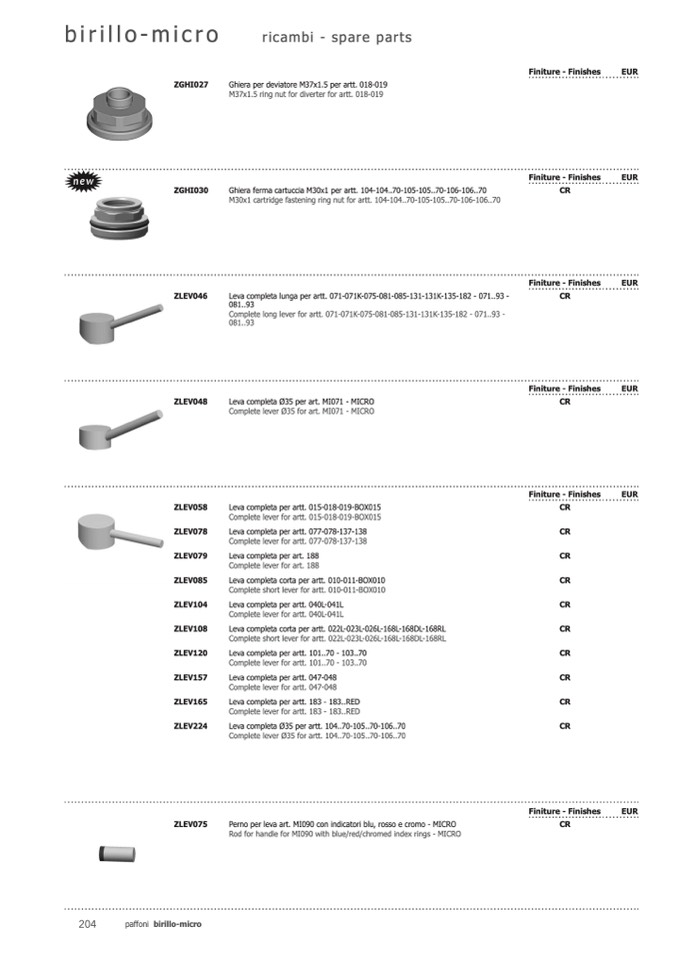 Complete lever for artt. 040L-041L