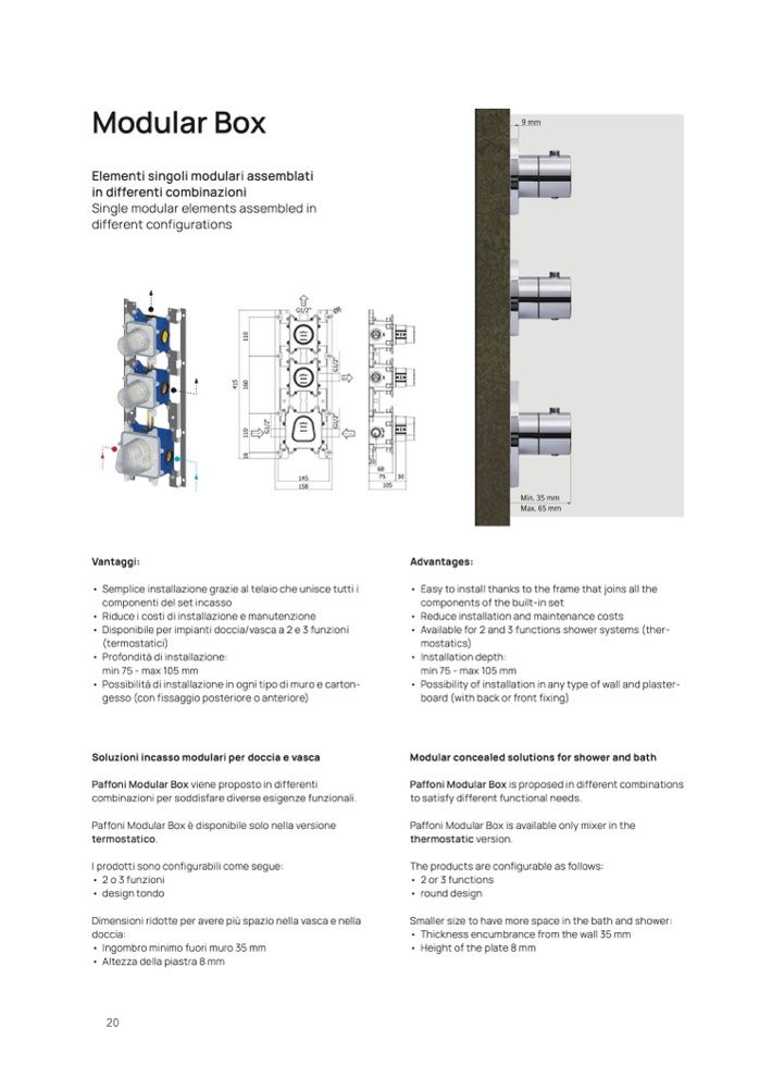• Possibilità di installazione in ogni tipo di muro e carton-