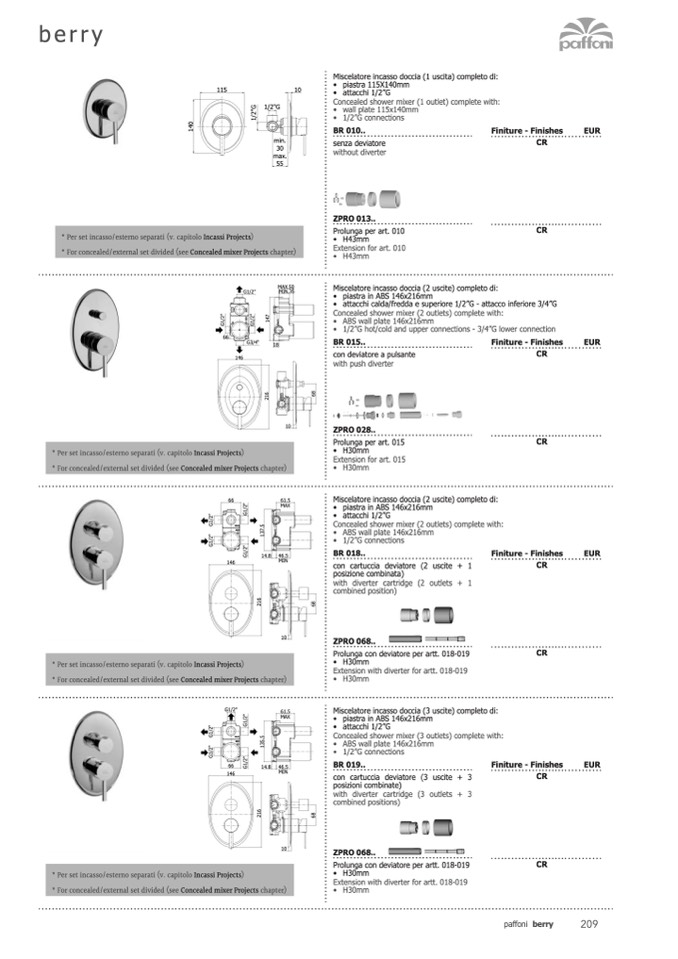 * For concealed/external set divided (see Concealed mixer Projects chapter)