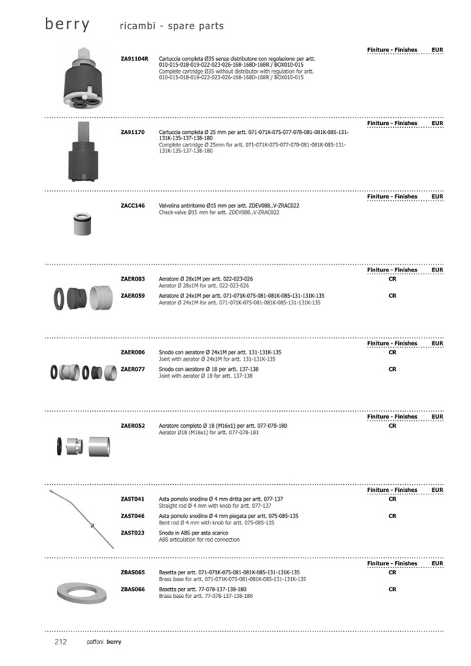 Complete cartridge Ø 25mm for artt. 071-071K-075-077-078-081-081K-085-131-