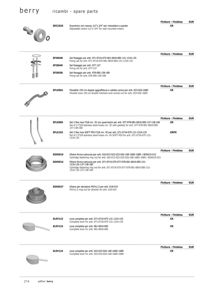 Cartridge fastening ring nut for artt. 071-071K-075-077-078-081-081K-085-131-