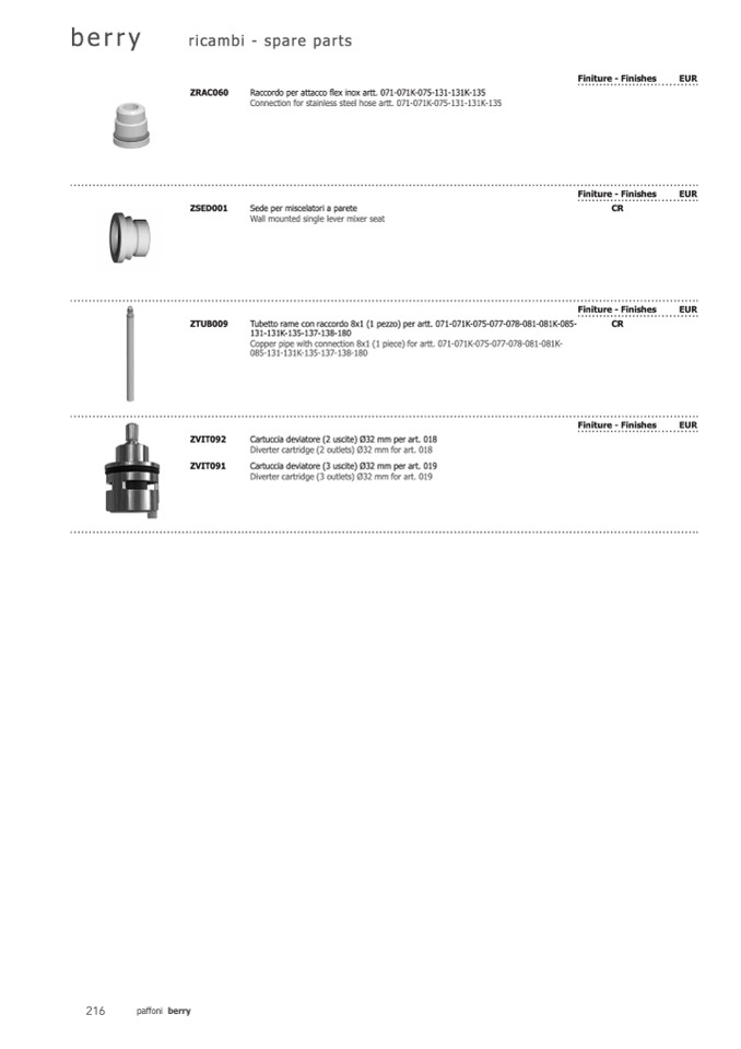 Cartuccia deviatore (3 uscite) Ø32 mm per art. 019