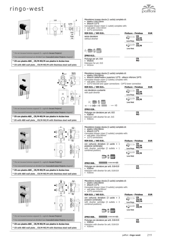 * For concealed/external set divided (see Concealed mixer Projects chapter)