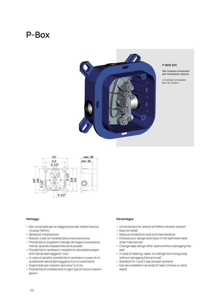 • Possibilità di installazione in ogni tipo di muro e carton-