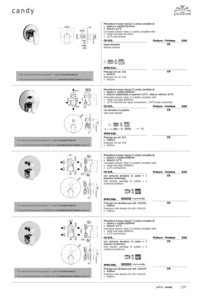 * For concealed/external set divided (see Concealed mixer Projects chapter)