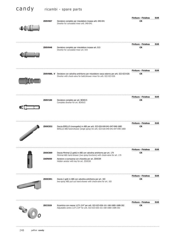 Deviatore completo per miscelatore incasso art. 015