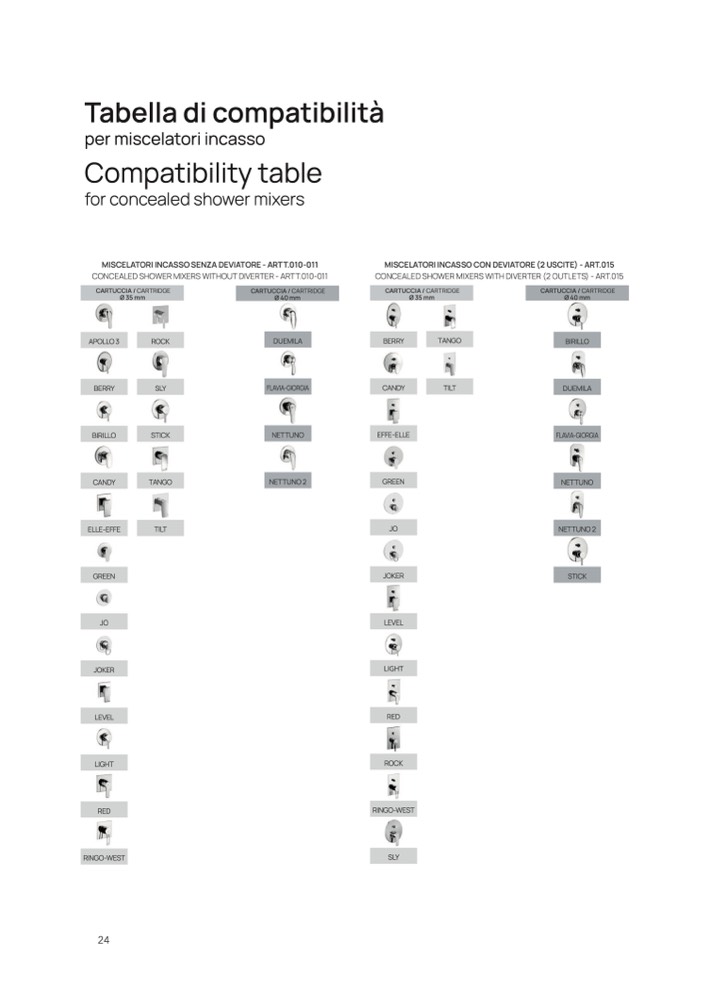 MISCELATORI INCASSO SENZA DEVIATORE - ARTT.010-011