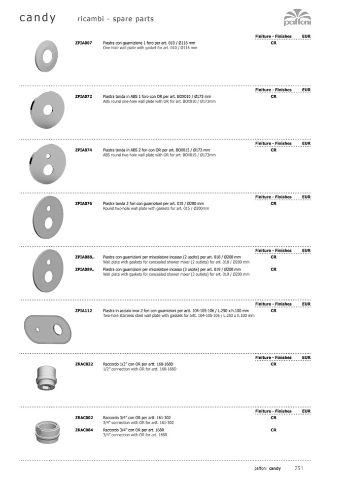 Piastra con guarnizioni per miscelatore incasso (2 uscite) per art. 018 / Ø200 mm