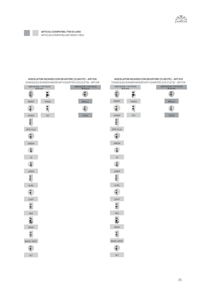 CONCEALED SHOWER MIXERS WITH DIVERTER (2 OUTLETS) - ART.018
