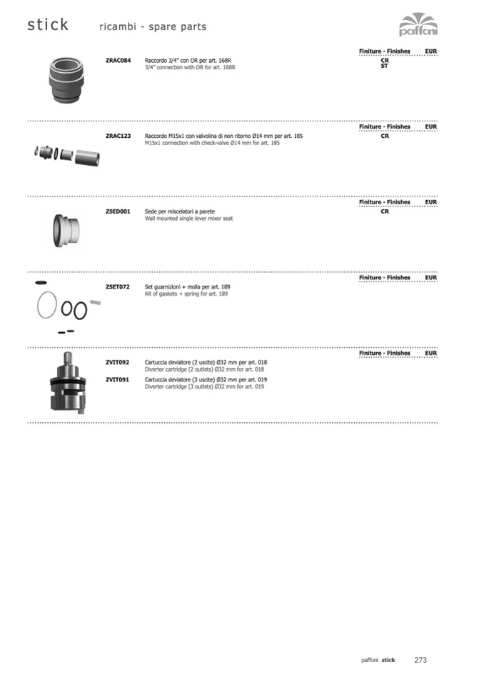 Cartuccia deviatore (3 uscite) Ø32 mm per art. 019