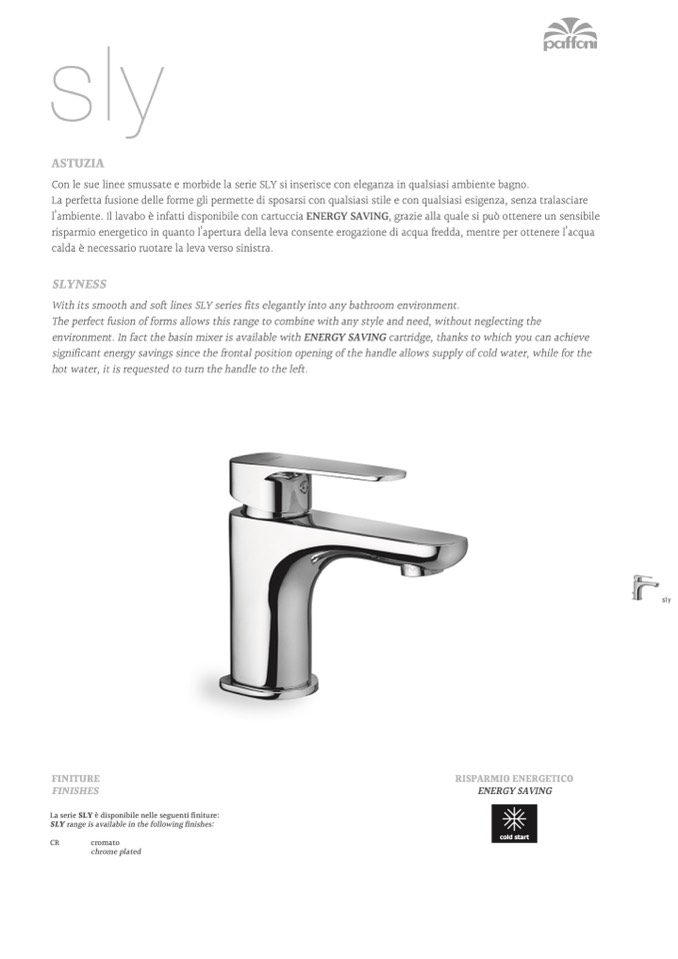 environment. In fact the basin mixer is available with ENERGY SAVING cartridge, thanks to which you can achieve
