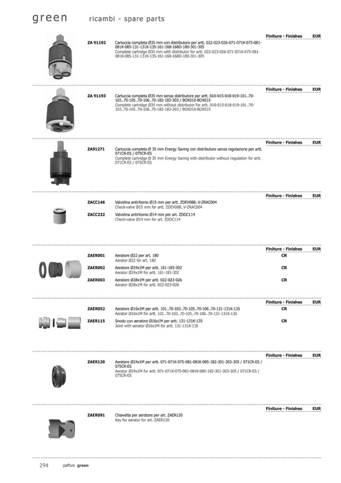 Complete cartridge Ø35 mm without distributor for artt. 010-015-018-019-101..70-