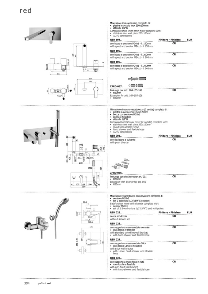 Miscelatore incasso vasca/doccia (2 uscite) completo di: