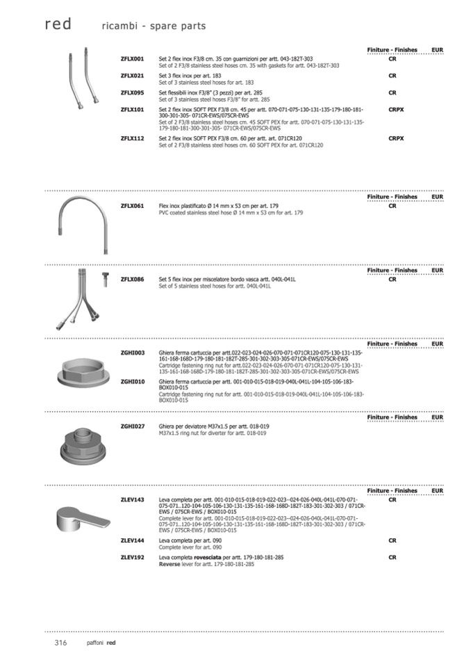 Complete lever for artt. 001-010-015-018-019-022-023--024-026-040L-041L-070-071-