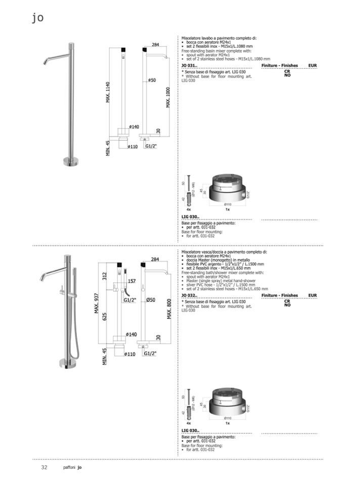 • set 2 flessibili inox - M15x1/L.1080 mm