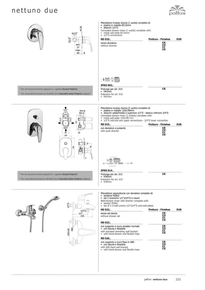 * For concealed/external set divided (see Concealed mixer Projects chapter)