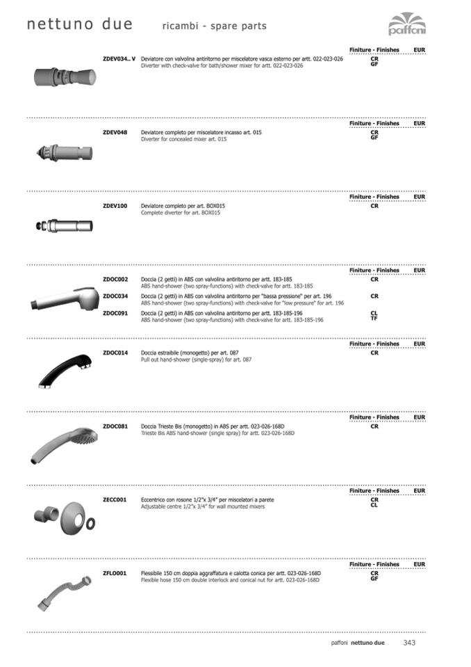 Doccia (2 getti) in ABS con valvolina antiritorno per artt. 183-185