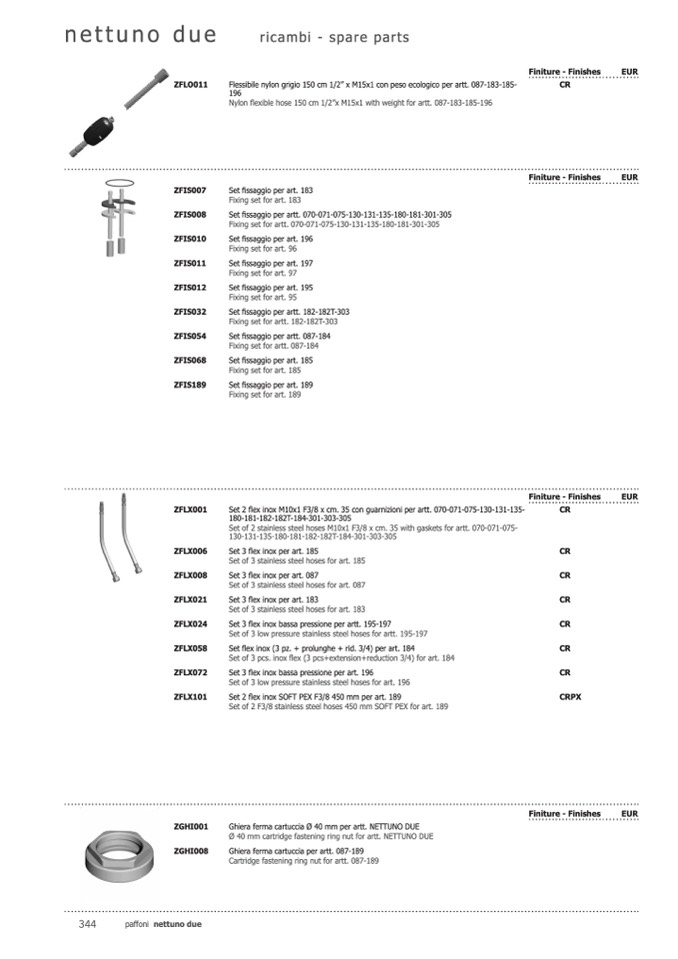 Set flex inox (3 pz. + prolunghe + rid. 3/4) per art. 184