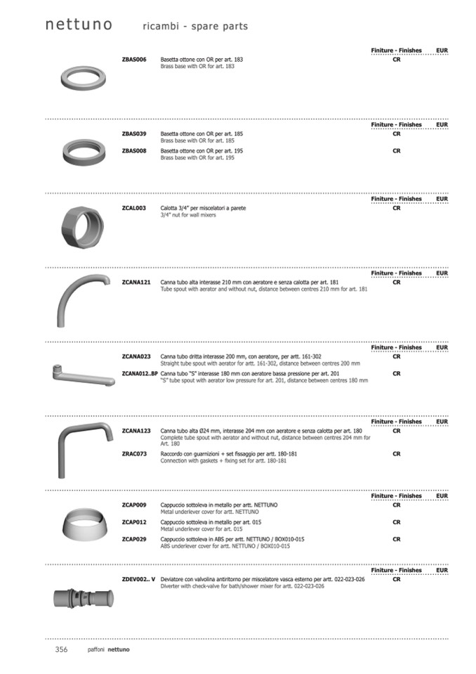ZCANA012..BP Canna tubo “S” interasse 180 mm con aeratore bassa pressione per art. 201