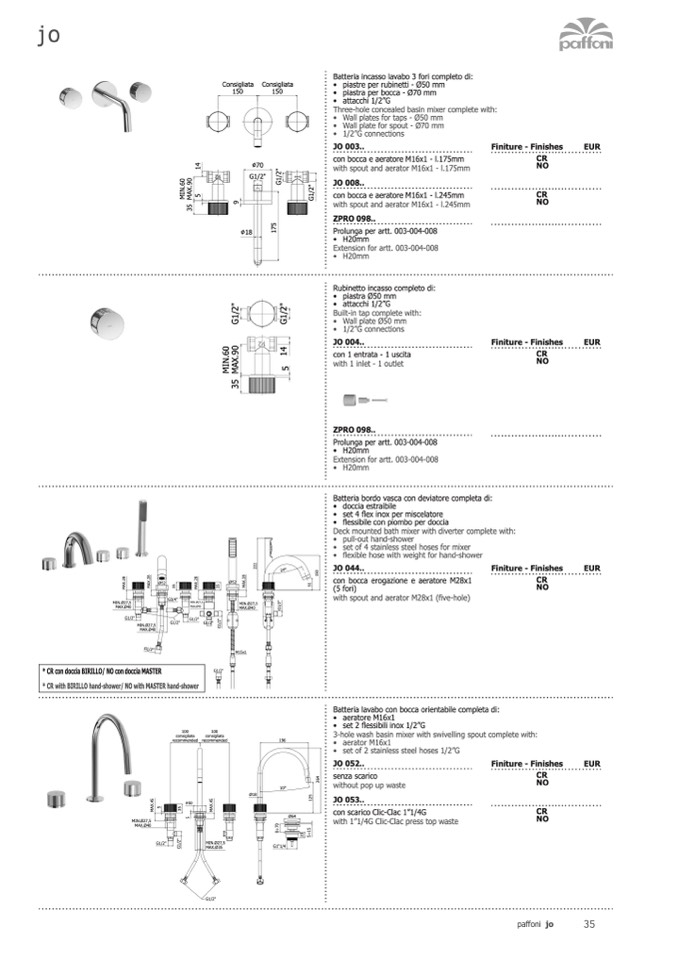 * CR with BIRILLO hand-shower/ NO with MASTER hand-shower