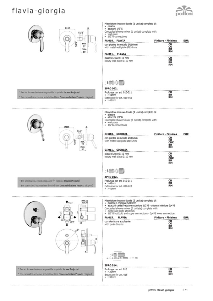 * For concealed/external set divided (see Concealed mixer Projects chapter)