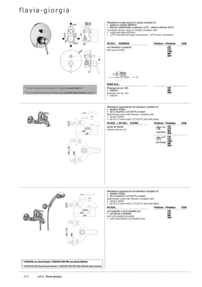 * FA024CR con doccia Royal / FA024CO-BR-RM con doccia Belinda