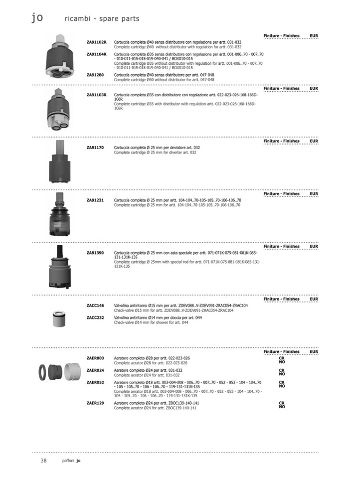 Complete cartridge Ø35 with distributor with regulation artt. 022-023-026-168-168D-
