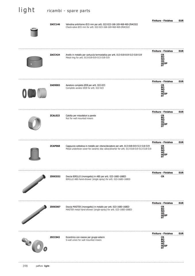 Doccia MASTER (monogetto) in metallo per artt. 023-168D-168ED
