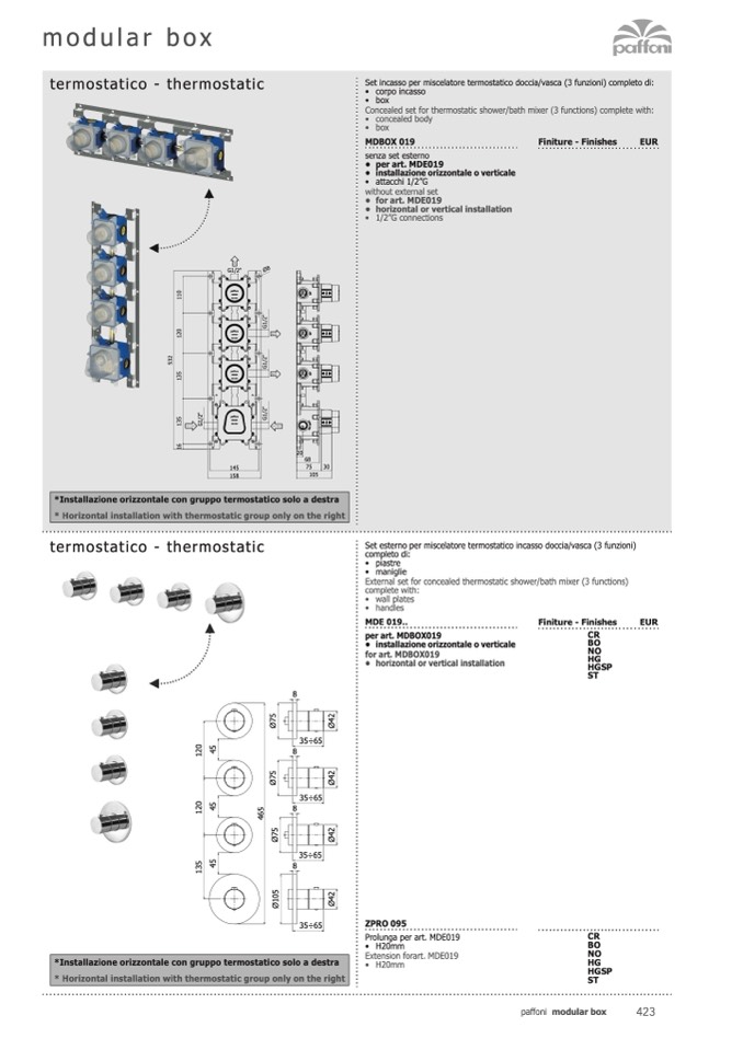 *Installazione orizzontale con gruppo termostatico solo a destra