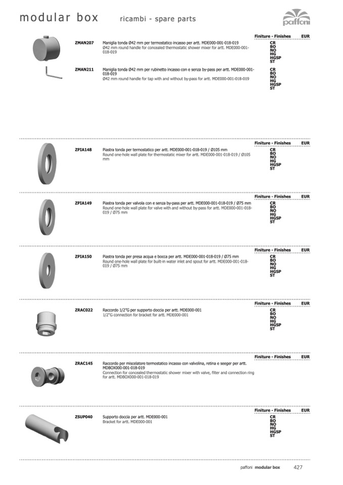 Round one-hole wall plate for valve with and without by-pass for artt. MDE000-001-018-