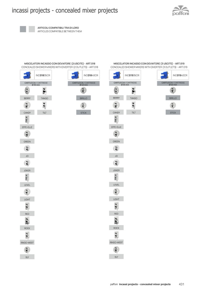 MISCELATORI INCASSO CON DEVIATORE (2 USCITE) - ART.018
