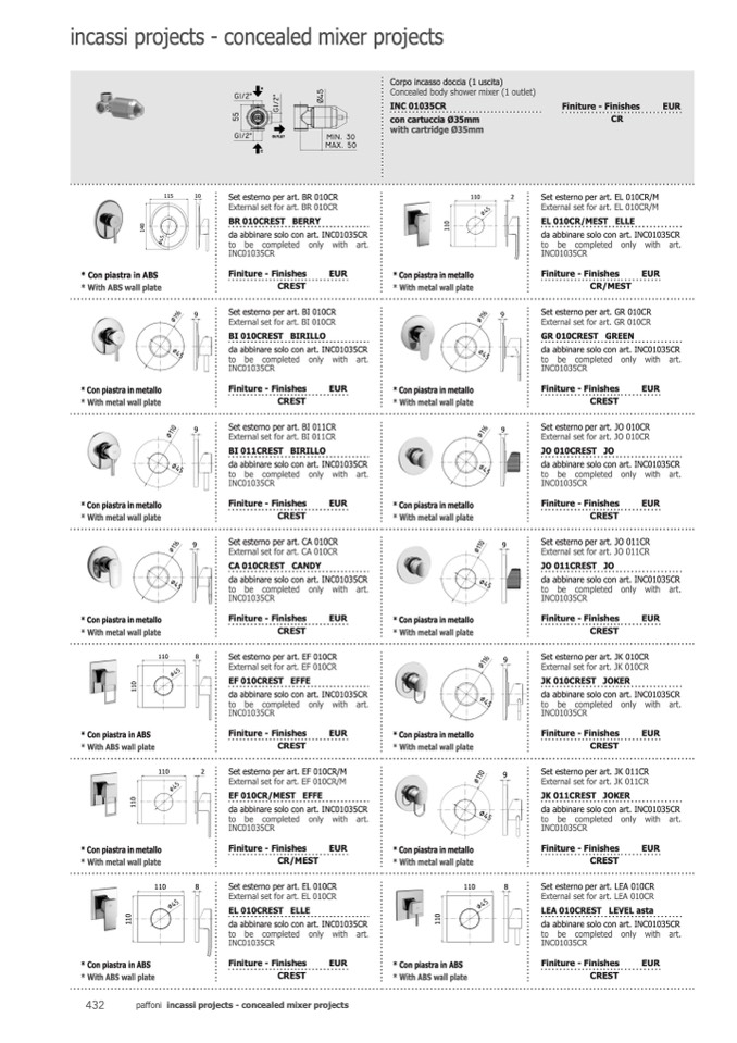paffoni incassi projects - concealed mixer projects