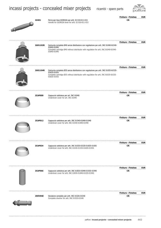 Complete cartridge Ø40 without distributor with regulation for artt. INC 01040-01540-