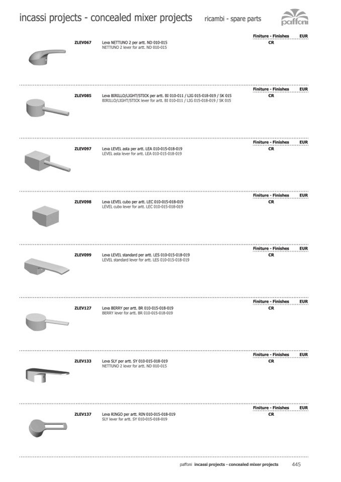 BIRILLO/LIGHT/STICK lever for artt. BI 010-011 / LIG 015-018-019 / SK 015