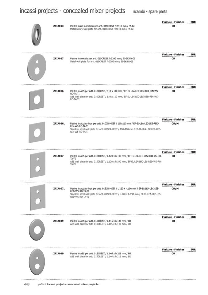 Piastra in ABS per artt. 015CREST / L.120 x h.190 mm / EF-EL-LEA-LEC-LES-RED-WS-RO-