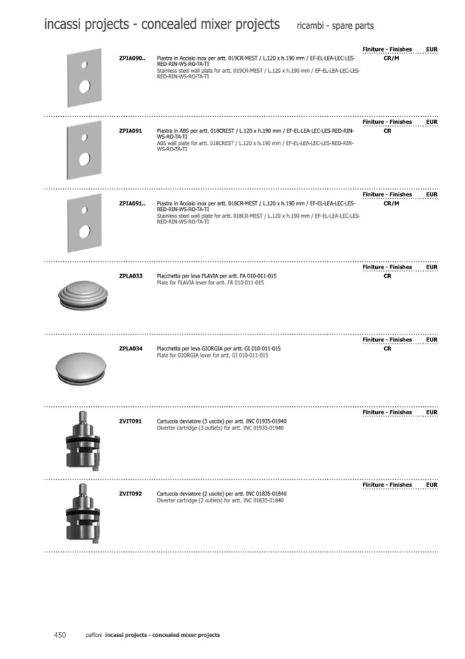 Diverter cartridge (3 outlets) for artt. INC 01935-01940