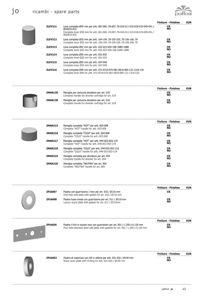 Leva completa Ø45 mm per artt. 001-006..70-007..70-010-011-015-018-019-040-041 /