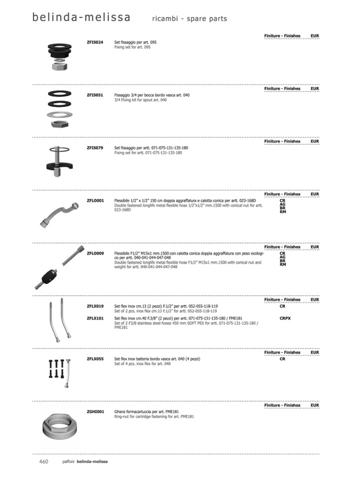 Set flex inox batteria bordo vasca art. 040 (4 pezzi)