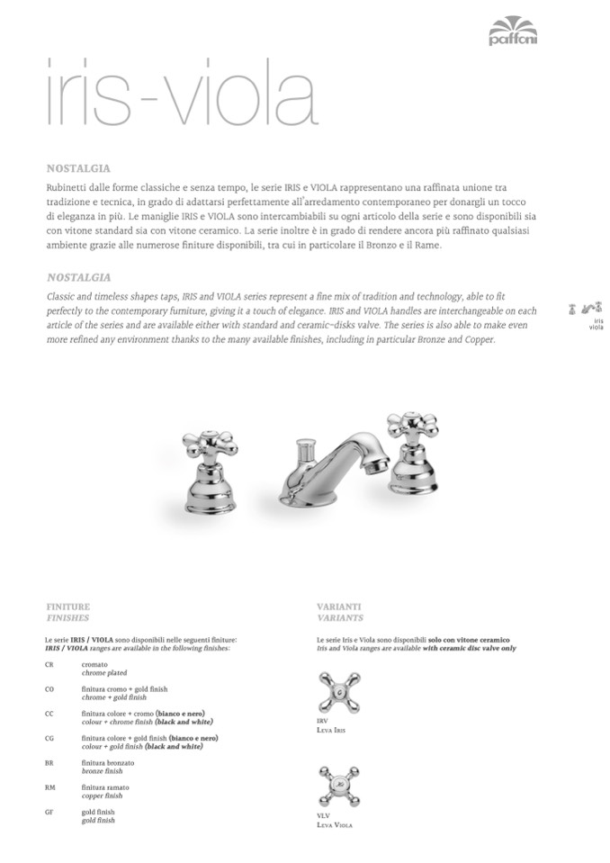 Classic and timeless shapes taps, IRIS and VIOLA series represent a