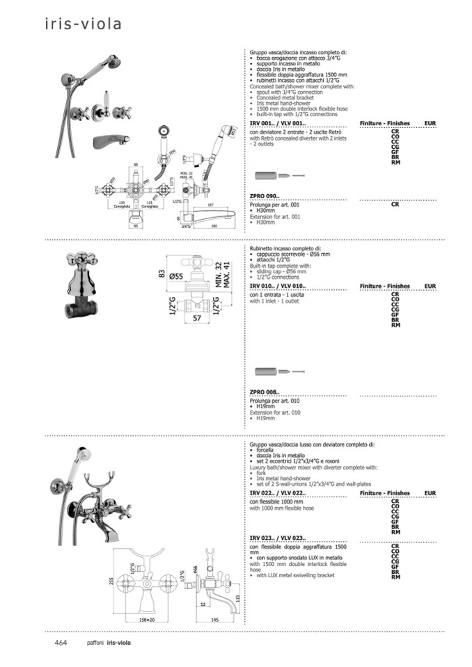 • rubinetti incasso con attacchi 1/2”G