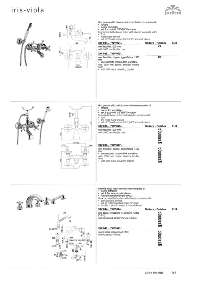 Gruppo vasca/doccia Retrò con deviatore completo di:
