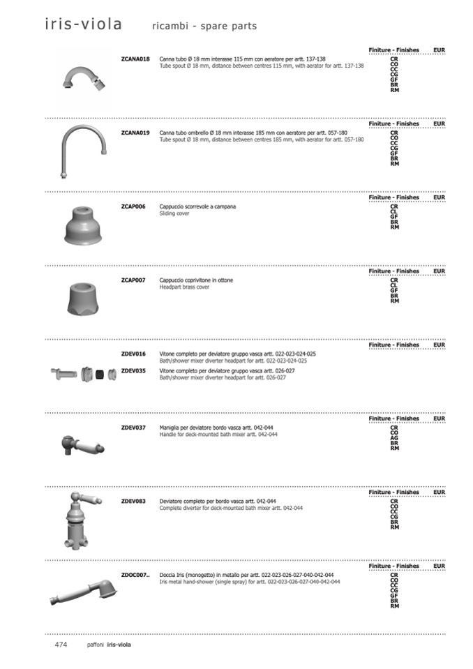 ZDOC007.. Doccia Iris (monogetto) in metallo per artt. 022-023-026-027-040-042-044
