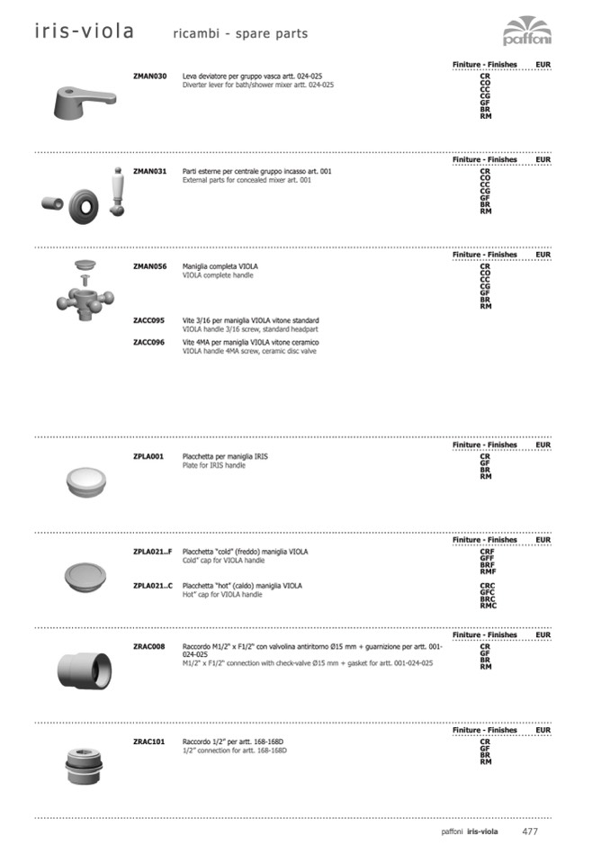 Finiture - Finishes