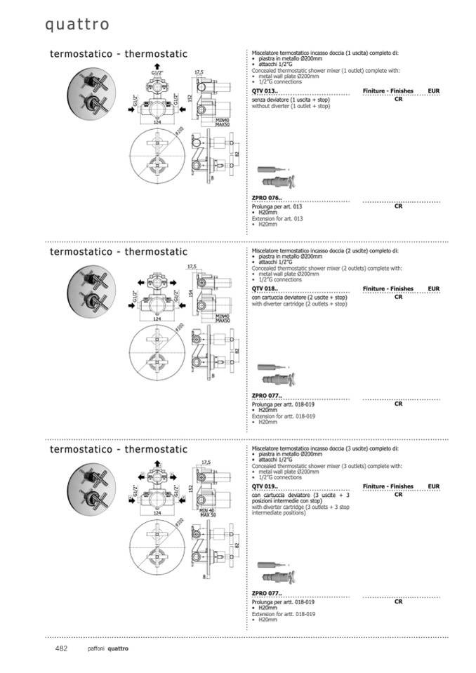 Concealed thermostatic shower mixer (3 outlets) complete with: